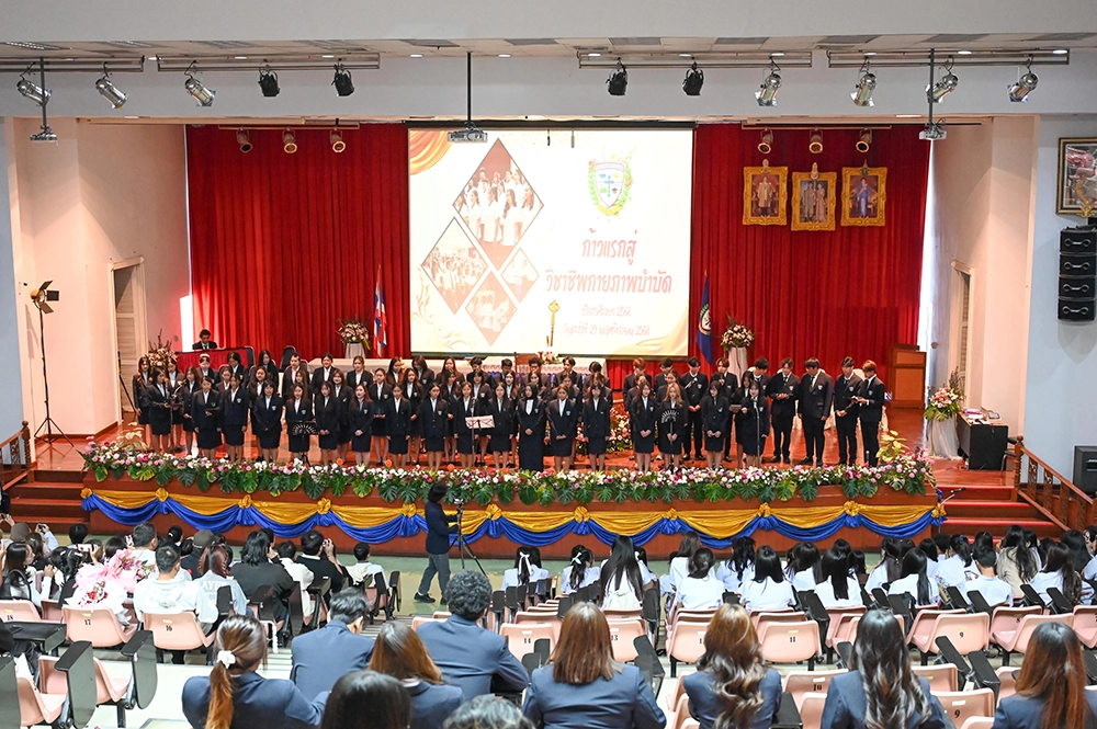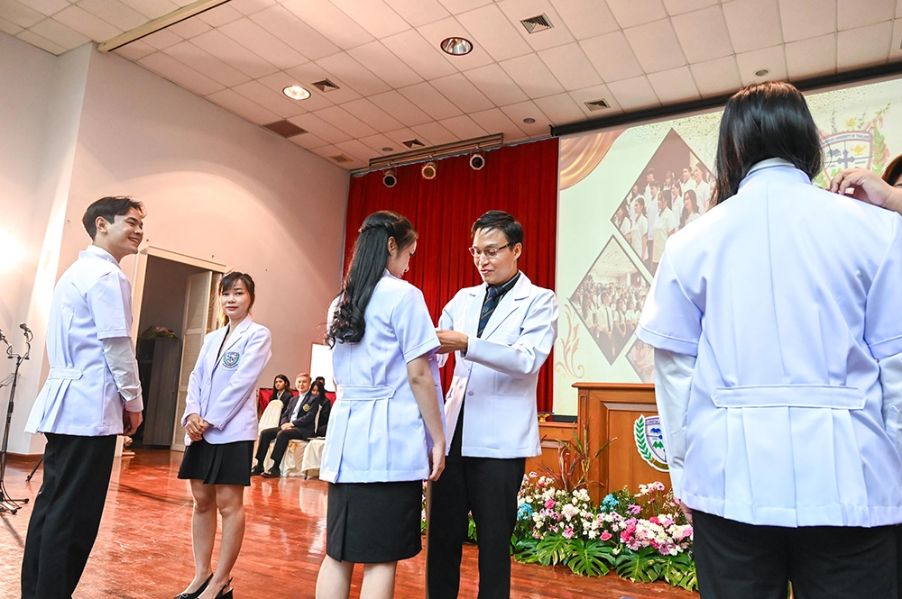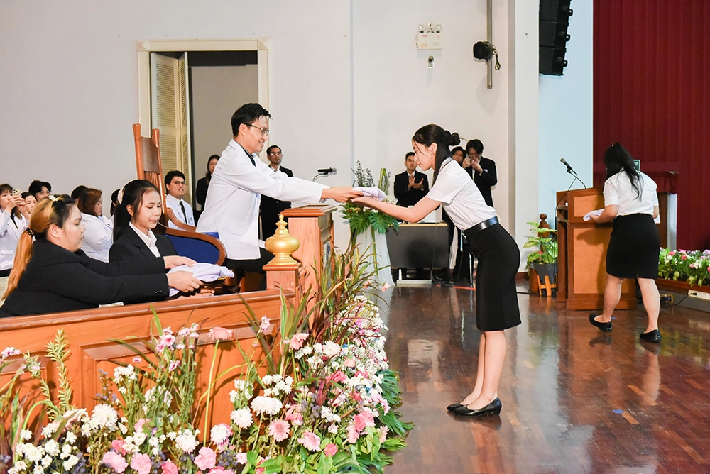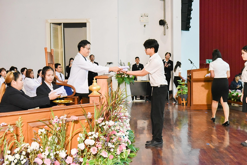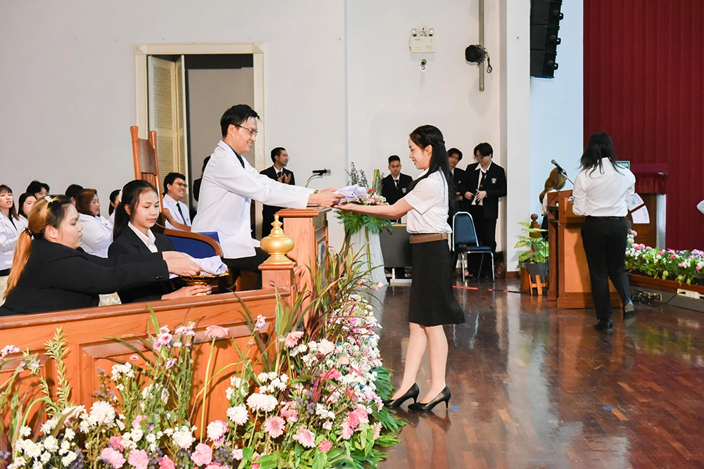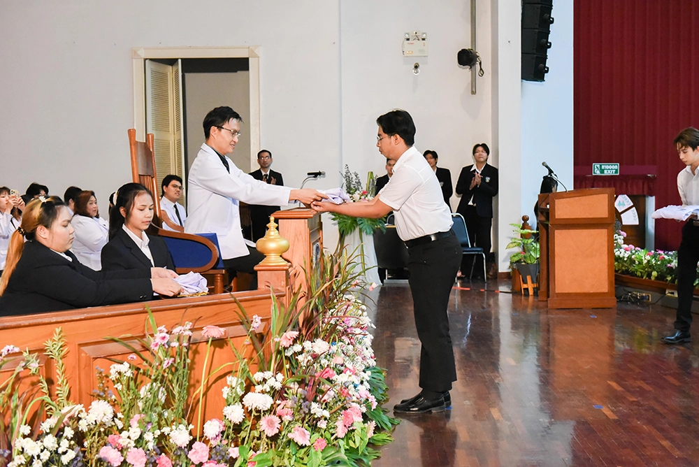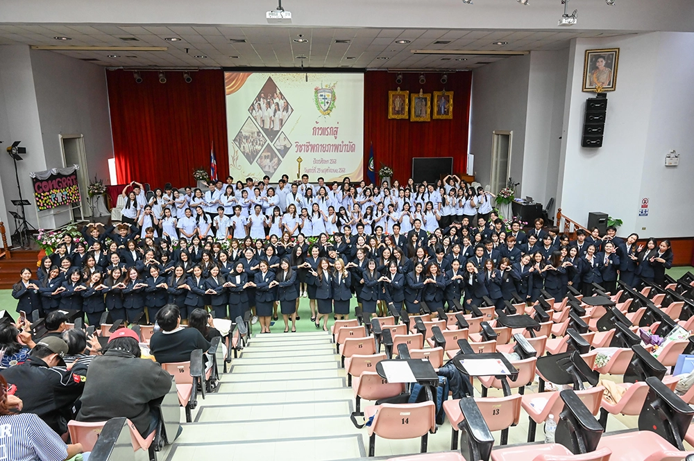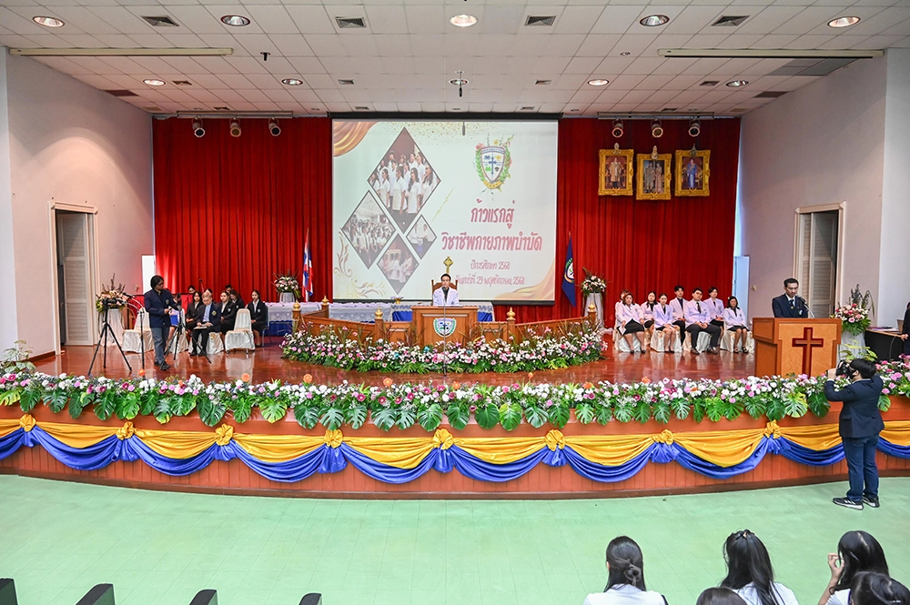 On Saturday, November 29, 2025, College of Health Sciences, Christian University of Thailand organized the “First Step into the Physical Therapy Profession” Project for Academic Year 2025 to promote pride and cultivate professional awareness among Physical Therapy students. Dr. Dhissanuvach Chaikhot, Dean of the College of Health Sciences presided over the ceremony of handing over physical therapy gowns to 35 students. The atmosphere was filled with joy and determination as the students took an important step into their professional journey. This project is another important activity of the college that helps inspire them before moving on to practical learning and practical work in the future.