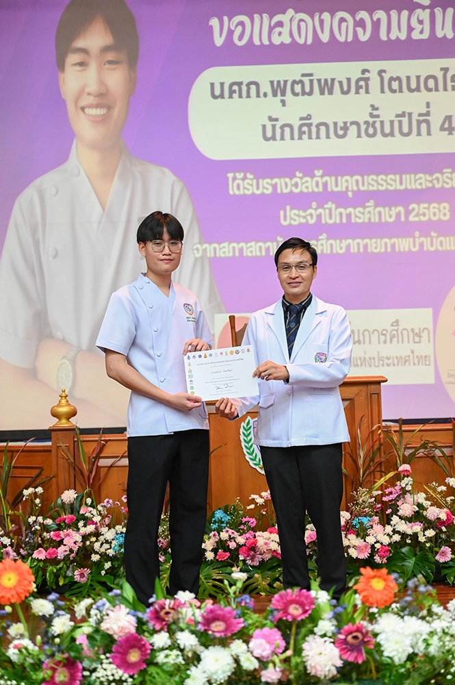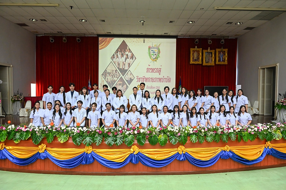 โครงการ “ก้าวแรกสู่วิชาชีพกายภาพบำบัด” ประจำปีการศึกษา 2568 เพื่อส่งเสริมความภาคภูมิใจและปลูกจิตสำนึกความเป็นวิชาชีพให้แก่นักศึกษากายภาพบำบัด ภายในพิธีได้รับเกียรติจาก ดร.ธฤษณุวัชร ไชยโคตร คณบดีคณะวิทยาศาสตร์สุขภาพ เป็นประธานในพิธีมอบ เสื้อกาวน์กายภาพบำบัด ให้แก่นักศึกษา จำนวน 35 คน บรรยากาศเต็มไปด้วยความปลาบปลื้มใจและความมุ่งมั่นของนักศึกษาที่กำลังก้าวเข้าสู่เส้นทางวิชาชีพด้านกายภาพบำบัด โครงการนี้ถือเป็นอีกหนึ่งกิจกรรมสำคัญของคณะฯ ที่ช่วยสร้างแรงบันดาลใจ ก่อนก้าวสู่การเรียนภาคปฏิบัติและการทำงานจริงในอนาคต