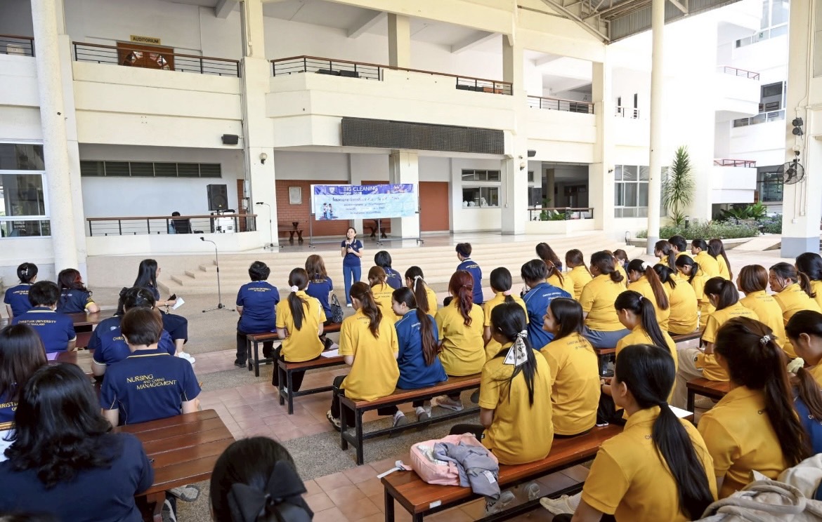 On Monday, December 8, 2025, the College of Nursing at Christian University of Thailand organized the Environmental Management Initiative: 5S Day 2025 (Big Cleaning Day 2025) at the Activity Plaza of Sri Sirindhon Building. Led by Assistant Professor Dr. Netchanok Sritoomma, Dean of the College of Nursing, administrators, faculty members, staff, and students participated in the cleaning campaign. The results of the “Cleanest Workroom” competition were announced as follows: