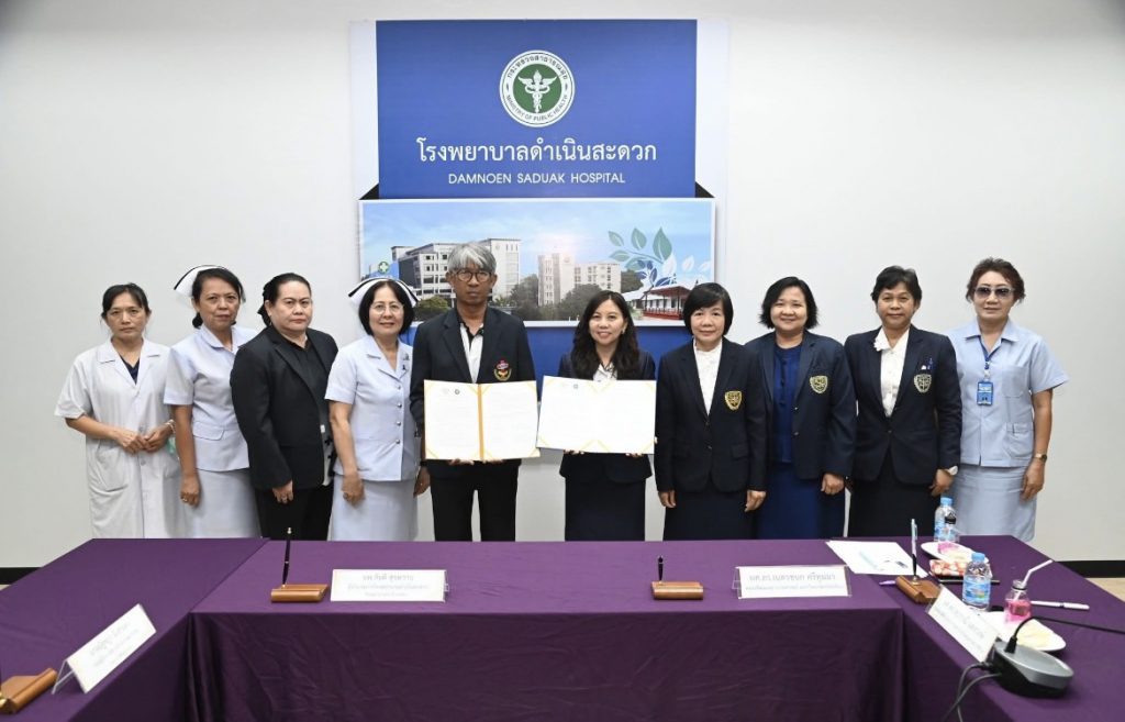 คณบดีคณะพยาบาลศาสตร์ พร้อมผู้แทนทีมผู้บริหาร ร่วมพิธีลงนามความร่วมมือทางวิชาการ กับ โรงพยาบาลดำเนินสะดวก
