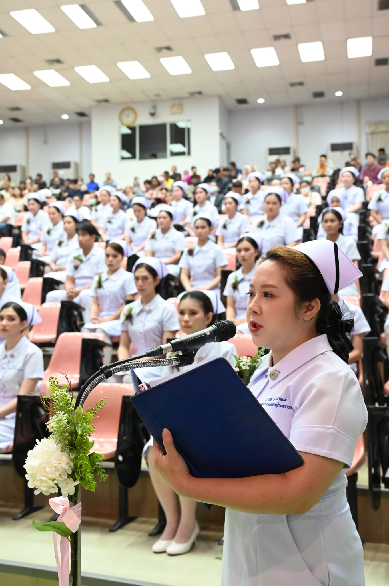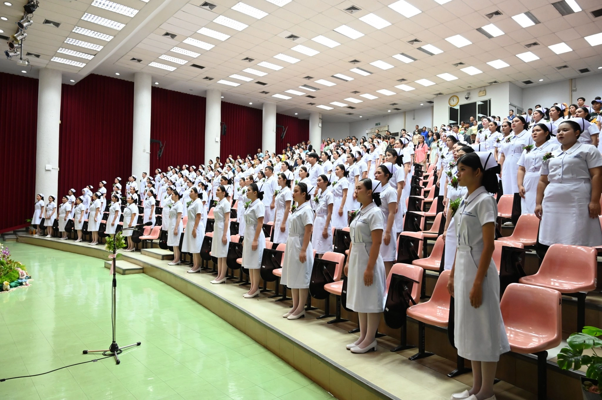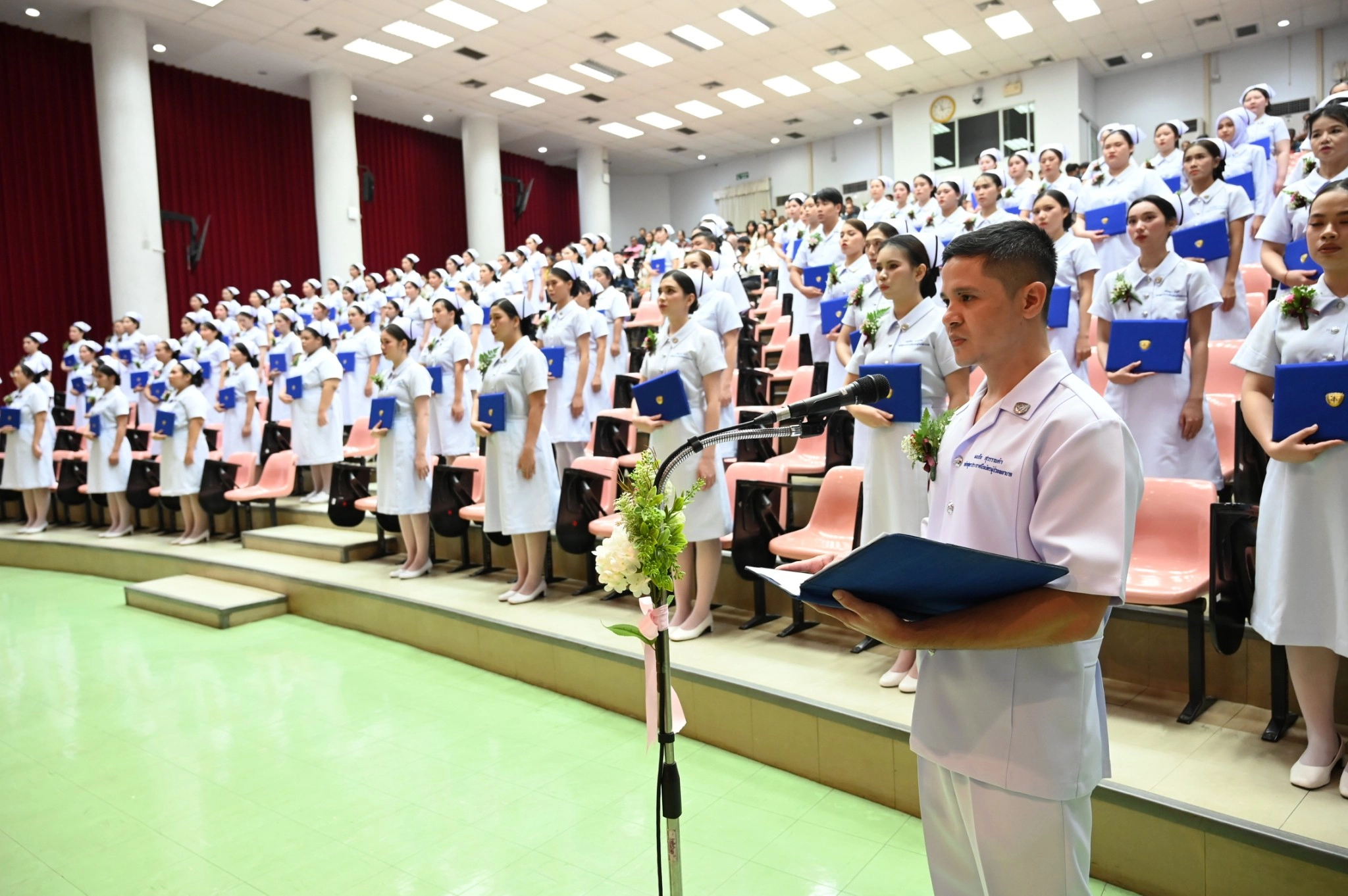 คณะพยาบาลศาสตร์ มหาวิทยาลัยคริสเตียน จัดพิธีมอบประกาศนียบัตรแก่ผู้สำเร็จการศึกษาหลักสูตรประกาศนียบัตรผู้ช่วยพยาบาล ปีการศึกษา 2567 โดย ผู้ช่วยศาสตราจารย์ ดร.สุลักษมณ์ ภัทรธรรมมาศ อธิการบดีมหาวิทยาลัยคริสเตียน เป็นประธานในพิธีมอบประกาศนียบัตรแก่ผู้สำเร็จการศึกษา และผู้ช่วยศาสตราจารย์ ดร.เนตรชนก ศรีทุมมา คณบดีคณะพยาบาลศาสตร์ ได้ทำพิธีมอบหมวก แก่ผู้สำเร็จการศึกษาประกาศนียบัตรผู้ช่วยพยาบาล จำนวน 116 คน ในวันเสาร์ที่ 2 สิงหาคม พ.ศ. 2568 ณ ห้องประชุม อาคารศรีสิรินธร มหาวิทยาลัยคริสเตียน