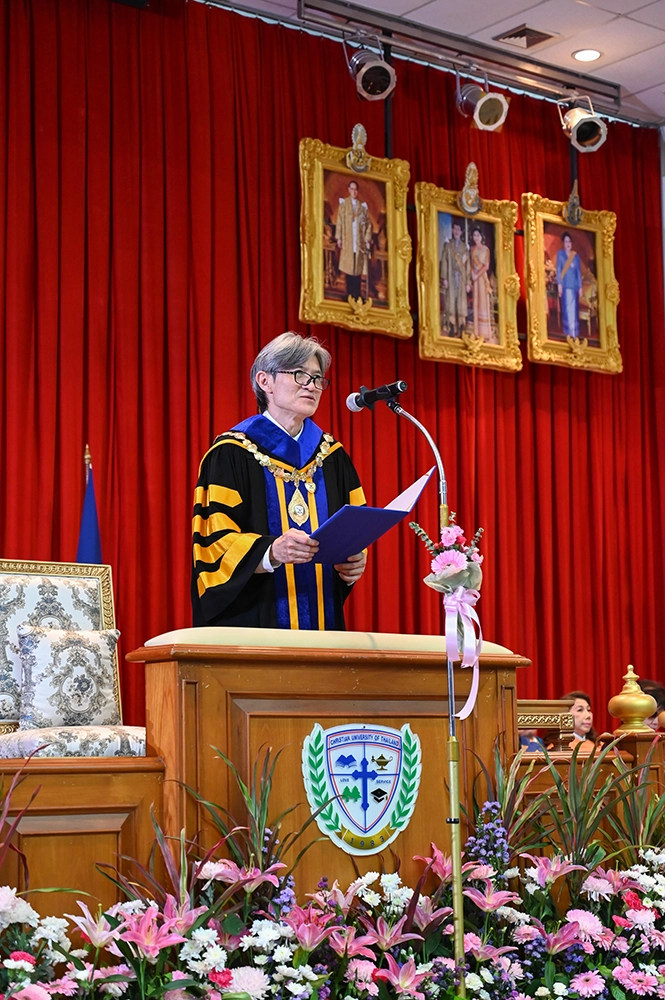 Christian University of Thailand organized the Commencement Ceremony in Academic Year 2024. Assistant Professor Dr. Suluck Pattarathammas, President of Christian University of Thailand presided over the Commencement Ceremony. This year, a total of 264 graduates received their degrees, consisting of 2 doctoral degree graduates, 42 master’s degree graduates, and 220 bachelor’s degree graduates. The ceremony took place on Sunday, 23 November 2025, at the Auditorium of Sri Sirindhorn Building, Christian University of Thailand.