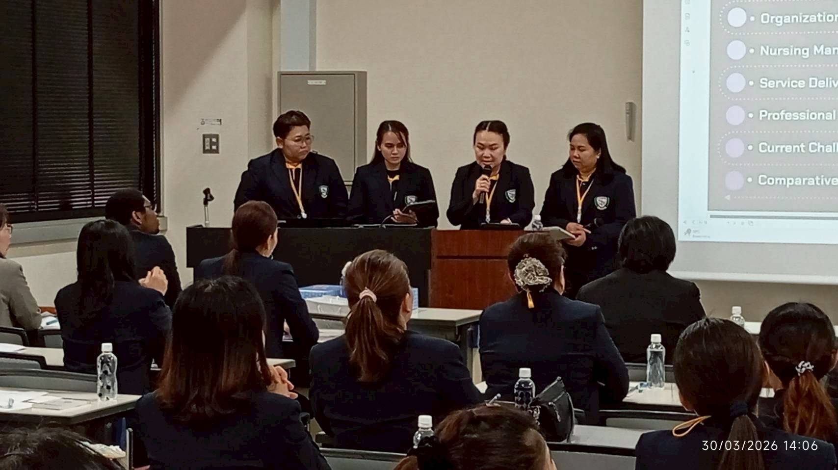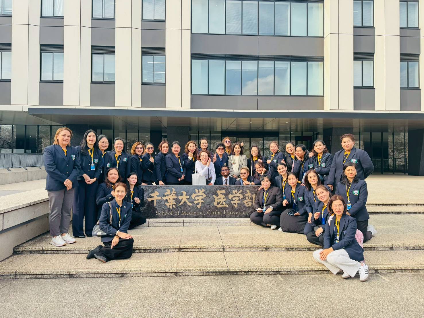 ทีมคณาจารย์นักศึกษาหลักสูตรปรัชญาดุษฎีบัณฑิต สาขาวิชาการบริหารการพยาบาลและนักศึกษาพยาบาล  ศาสตรมหาบัณฑิต สาขาวิชาการบริหารทางการพยาบาล จำนวน 44 คน โดยเข้าศึกษาดูงาน ณ School of Nursing, Chiba University ประเทศญี่ปุ่น ได้มีการนำเสนอเรื่อง Nursing Organization in Government Tertiary Hospital in Thailand โดยทีมนักศึกษาปริญญาเอกและมีการแลกเปลี่ยนเรียนรู้ระหว่างนักศึกษาและทีมคณาจารย์ของทั้งสองสถาบัน