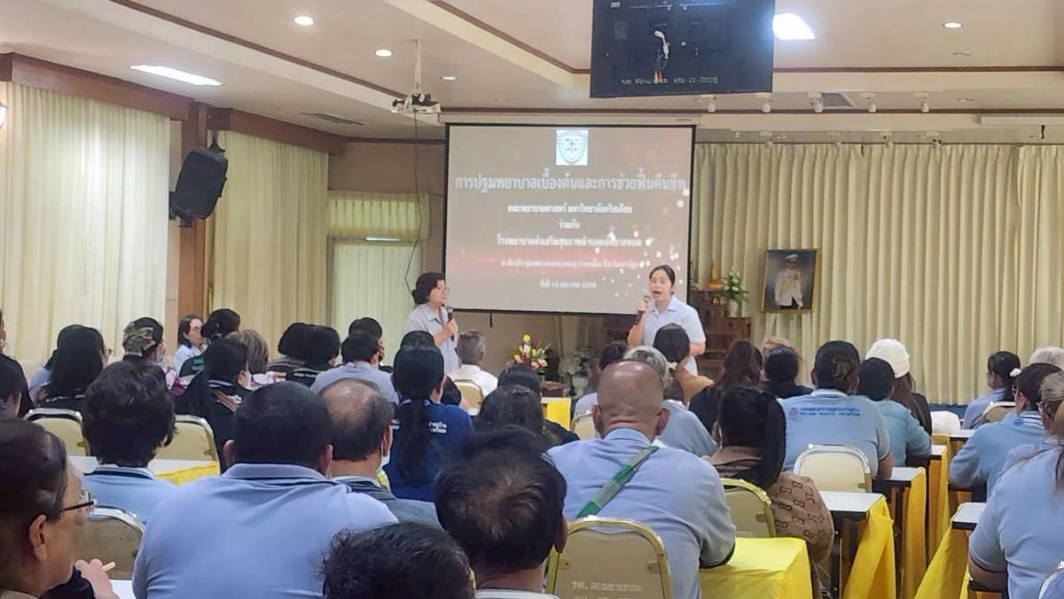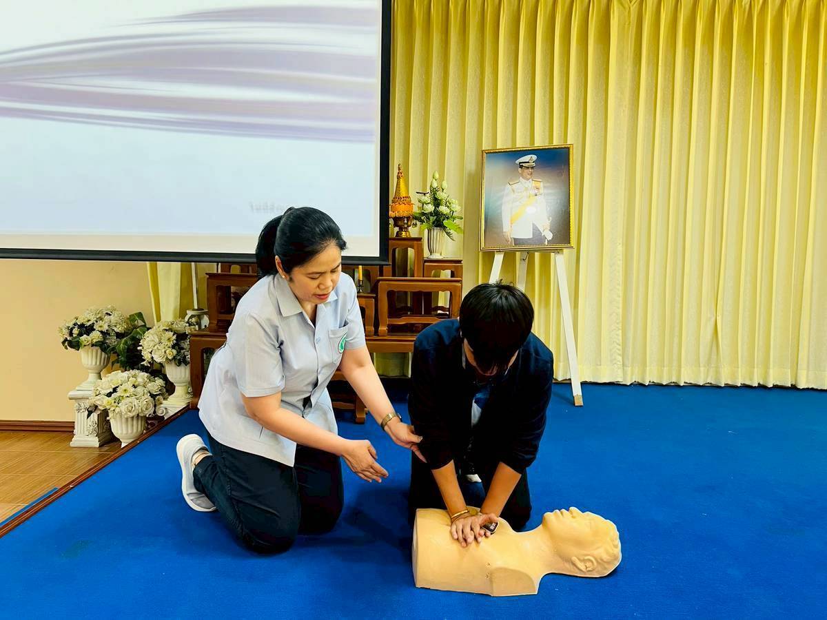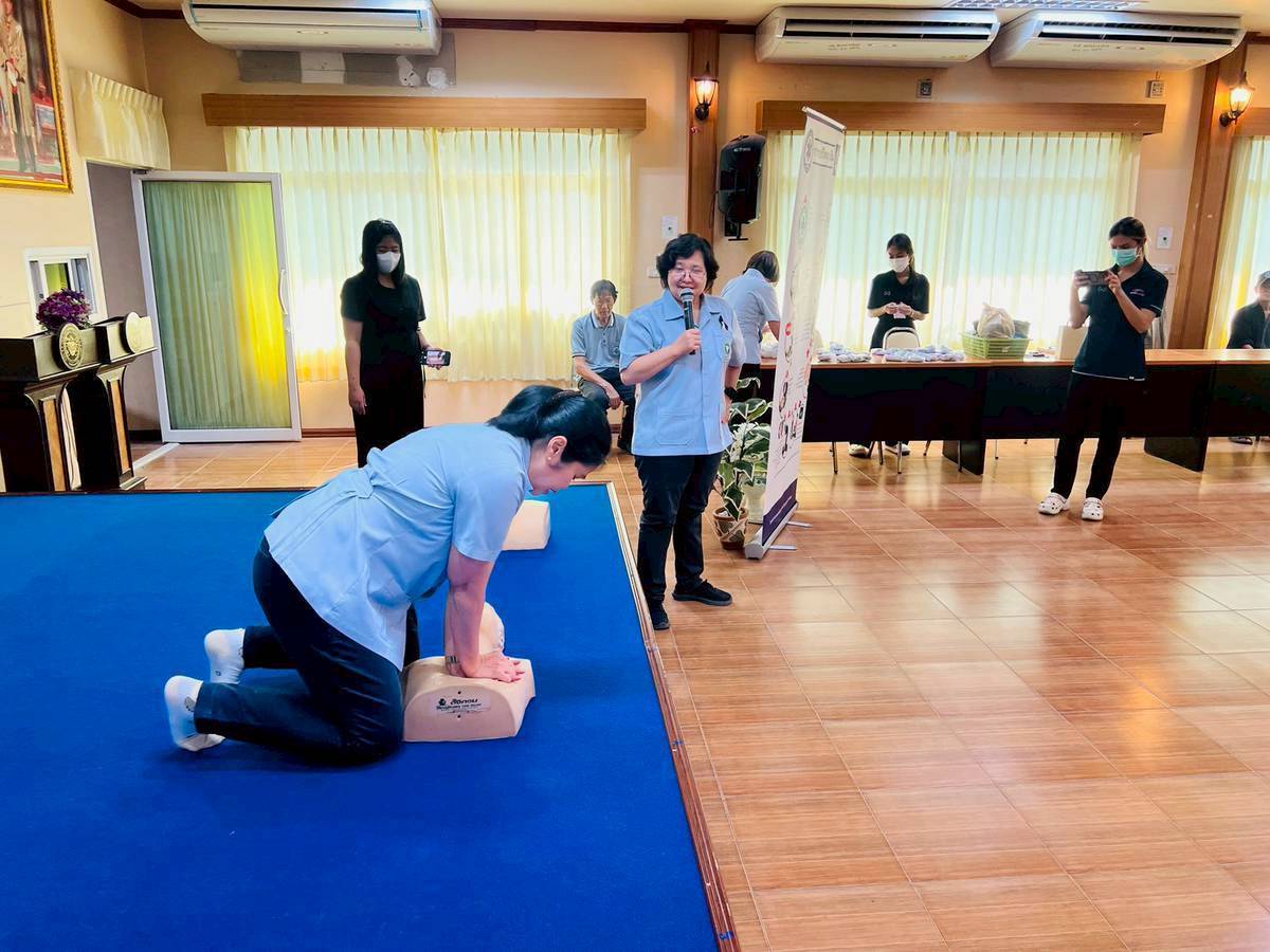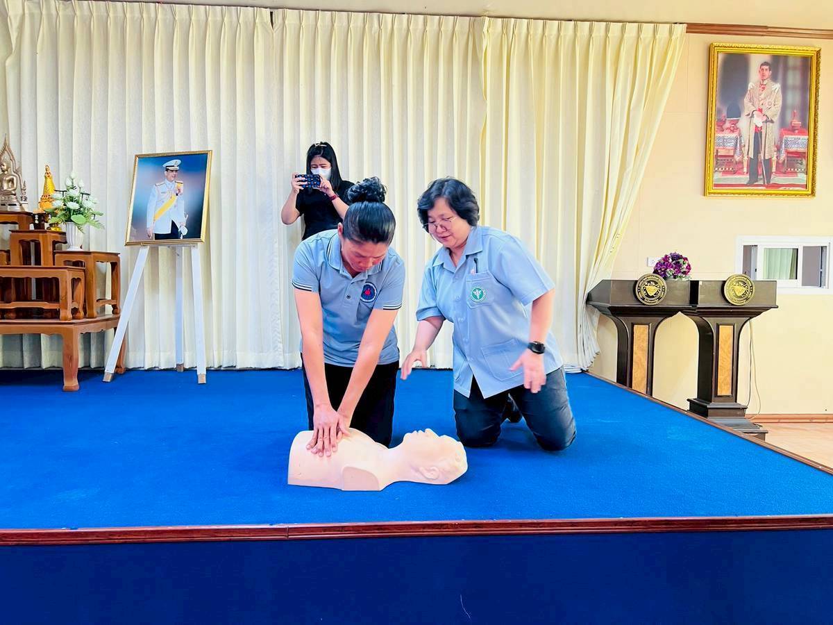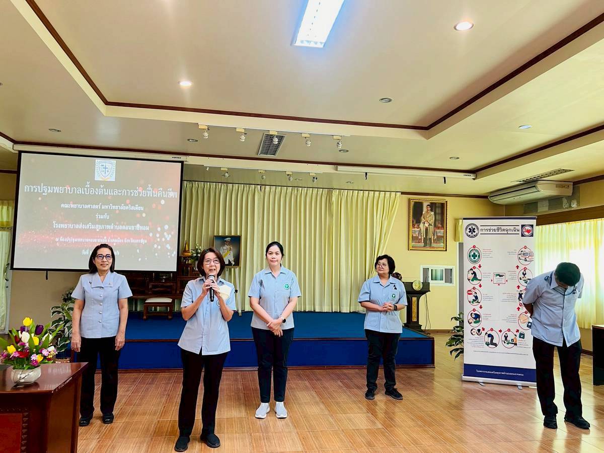 Faculty members of the Community Nursing group. Faculty of Nursing, Christian University We have received a request for your kind support in organizing a practical training workshop . First aid and basic cardiopulmonary resuscitation (CPR). At the meeting room of Don Yai Hom Subdistrict Municipality, Mueang District, Nakhon Pathom Province , as part of the “United Power of Loyalty” event organized by the Ministry of Public Health on the occasion of the 100 day commemoration. In remembrance of the passing of Her Majesty Queen Sirikit, the Queen Mother, a training session was held for public health personnel and village health volunteers (VHVs) on Wednesday, January 14, 2026, from 1:30 PM to 3:30 PM. The training focused on correct and appropriate first-aid techniques that can be practically applied . A total of 168 people attended the training . At the meeting room of Don Yai Hom Subdistrict Municipality, Mueang District, Nakhon Pathom Province.