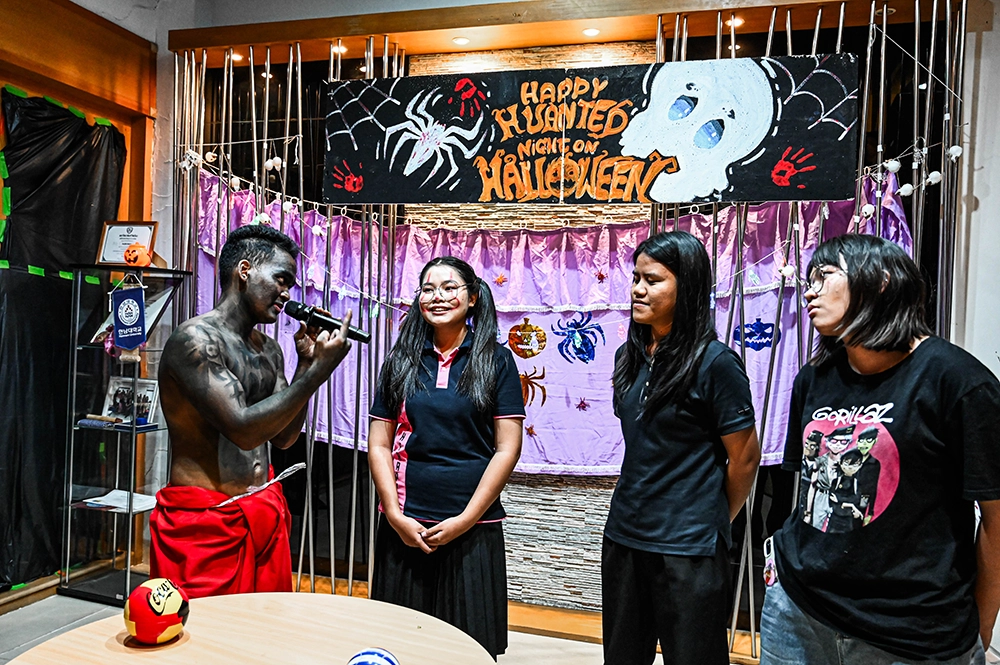 บรรยากาศภายในงานเต็มไปด้วยความอบอุ่น สนุกสนาน จากนักศึกษาที่เข้าร่วม ซึ่งนอกจากจะได้ร่วมเฉลิมฉลองวันฮาโลวีนแล้ว ยังเป็นกิจกรรมที่ช่วยเสริมทักษะการสื่อสารภาษาอังกฤษ และส่งเสริมความสัมพันธ์อันดีระหว่างนักศึกษาภายในมหาวิทยาลัยอีกด้วย.