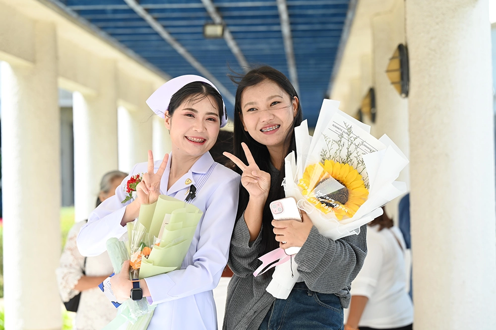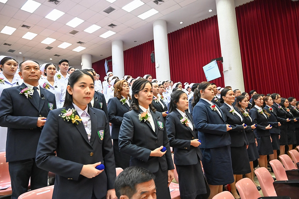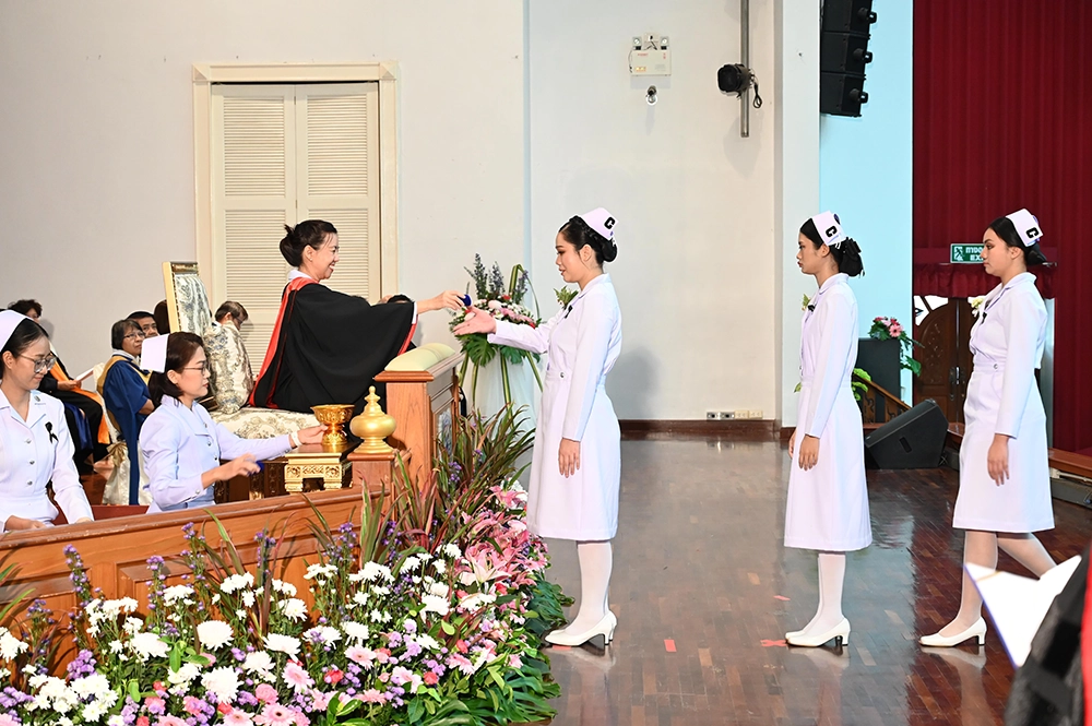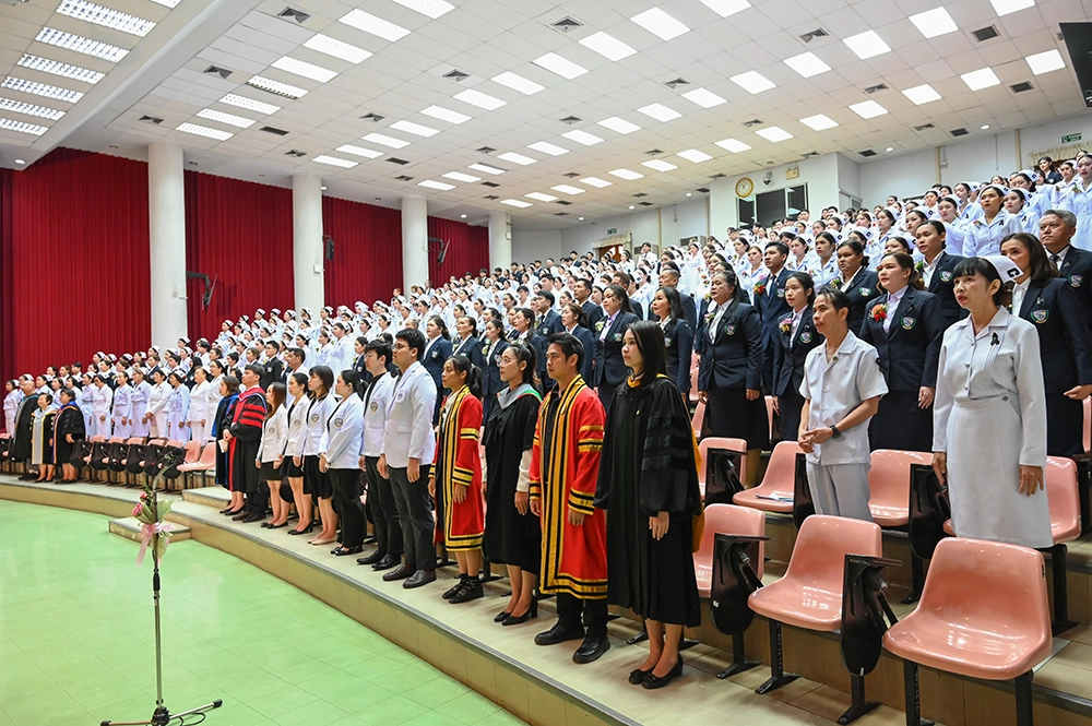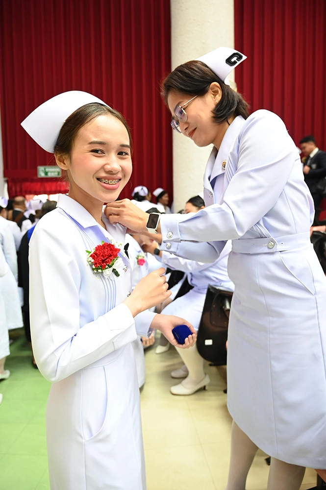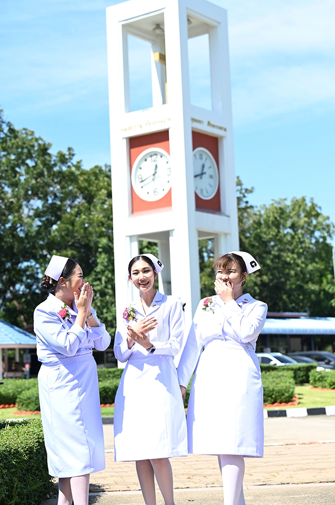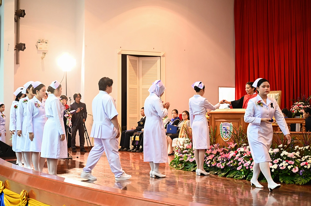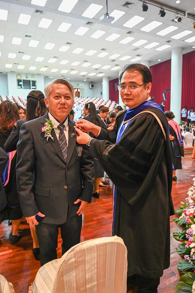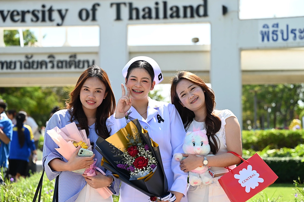 Assistant Professor Dr. Netchanok Sritoomma, Dean of College of Nursing, Dr. Dhissanuvach Chaikhot, Dean of College of Health Sciences, Assistant Professor Dr. Apinan Untaweesin, Dean of Multidisciplinary College, and Reverend Dr. Pongsak Limthongvirath, Dean of College of Christian Theology, bestowed academic pins to all graduates. Dr. Porntip Kwinsuporn, Senior Assistant President for Academic Affairs, delivered the congratulatory speech to the graduates. The ceremony took place on Saturday, 22 November 2025, at the Auditorium of the Sri Sirindhorn Building, Christian University of Thailand.