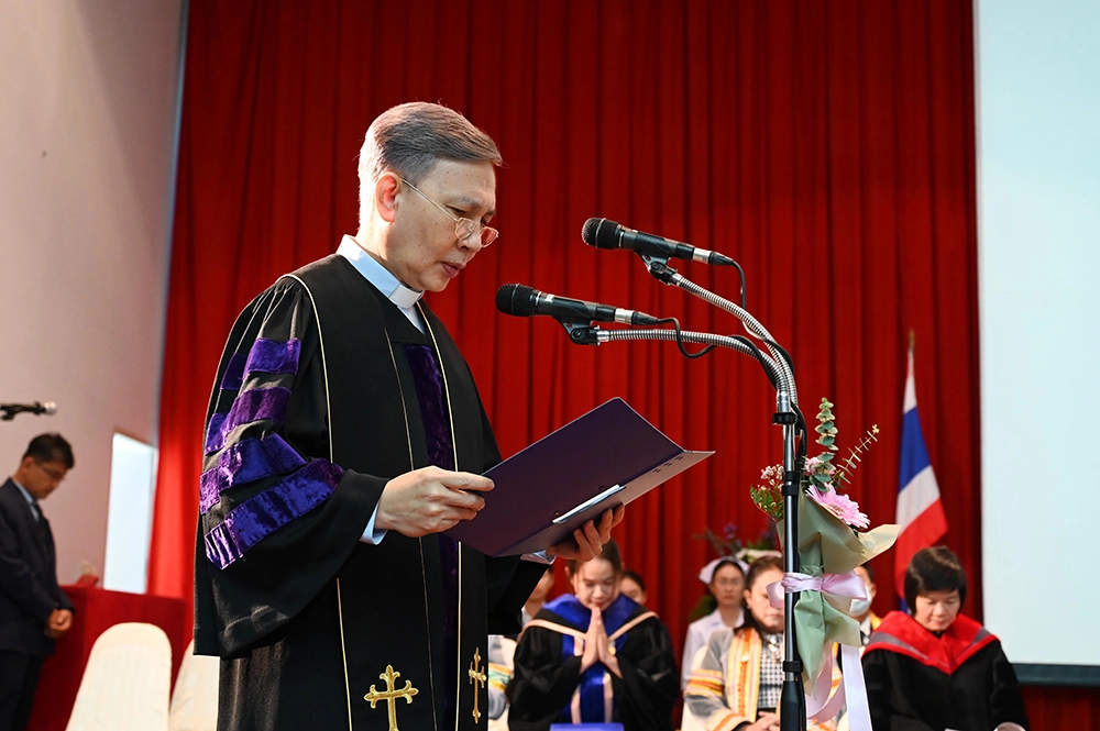 Christian University of Thailand organized the Graduation Ceremony and Academic Pin Bestowal in Academic Year 2024 for 267 graduates, including 224 bachelor’s degree graduates, 41 master’s degree graduates, and 2 doctoral degree graduates. Reverend Jirayoot Wajanathawornchai, Chaplain of Christian University of Thailand, lit the ceremonial candle and offered a prayer of praise and thanks to God.
