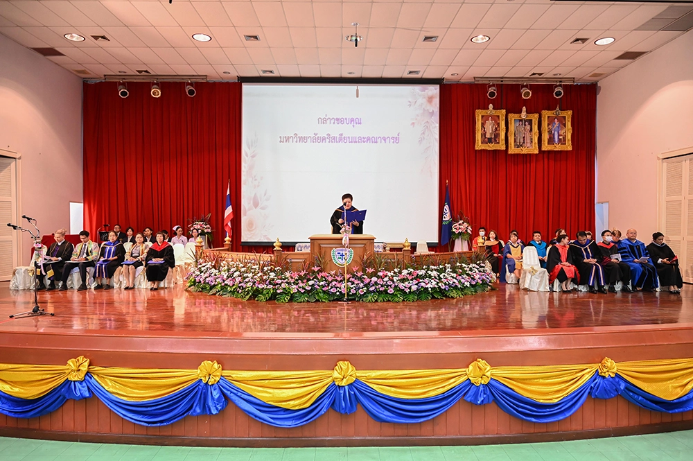 มหาวิทยาลัยคริสเตียน จัดพิธีประกาศการสำเร็จการศึกษาและมอบเข็มวิทยฐานะผู้สำเร็จการศึกษา ปีการศึกษา 2567 มีผู้สำเร็จการศึกษา จำนวน 267 ราย ผู้สำเร็จการศึกษาระดับปริญญาตรี  จำนวน  224  ราย ระดับปริญญาโท  จำนวน 41 ราย  และระดับปริญญาเอก จำนวน 2 ราย  ศาสนาจารย์ จิรยุทธ วจนะถาวรชัย อนุศาสกมหาวิทยาลัยคริสเตียน จุดเทียนพิธีและอธิษฐานสรรเสริญและโมทนาพระคุณพระเจ้า