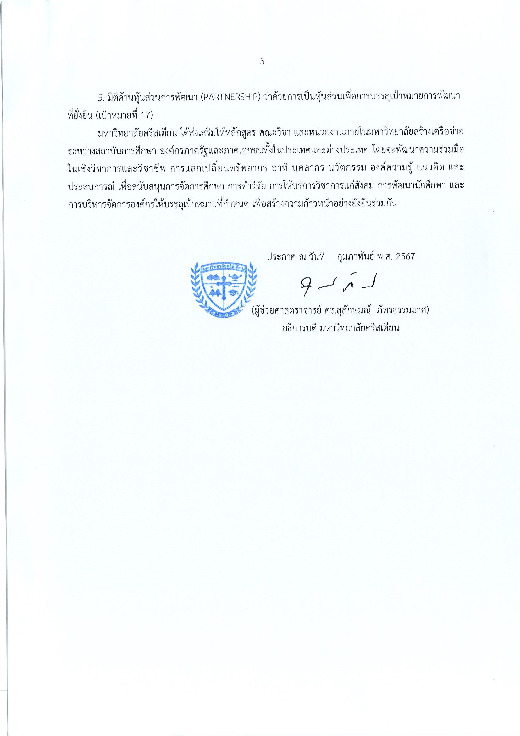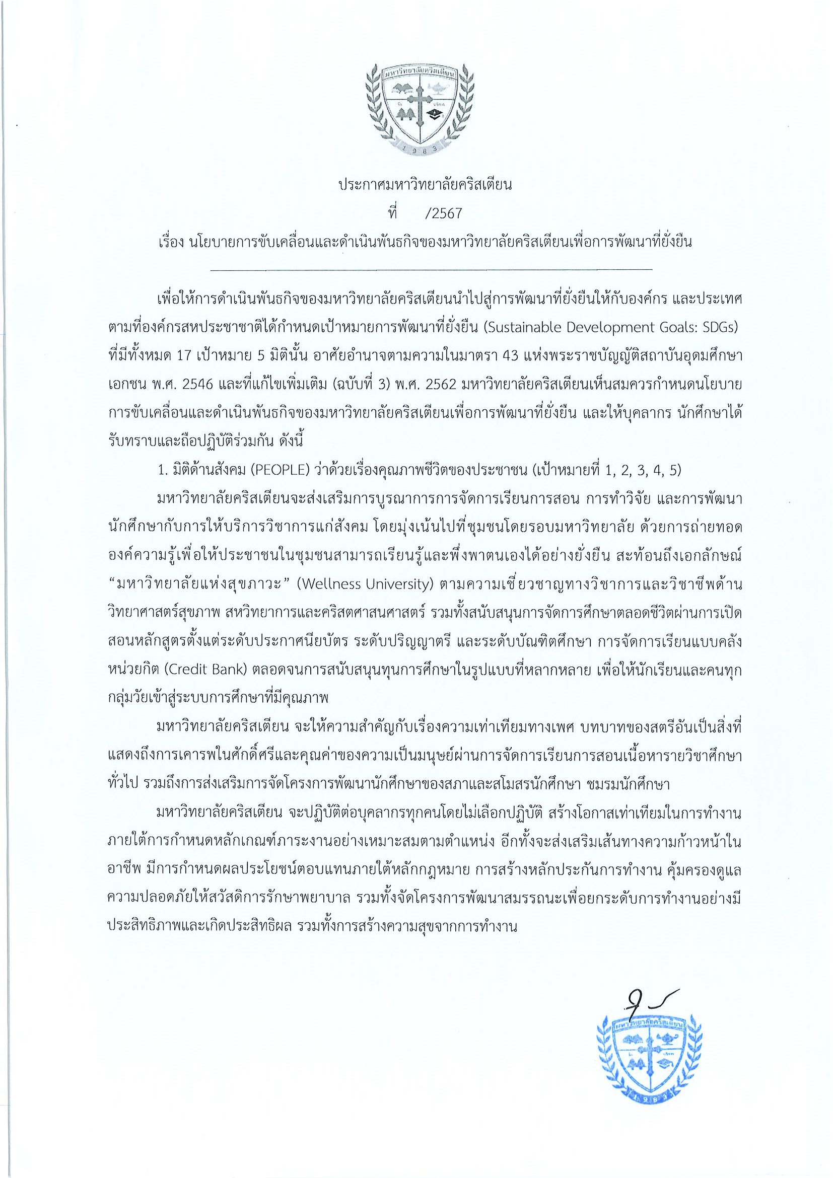 นโยบายการขับเคลื่อนการพัฒนาที่ยั่งยืนของมหาวิทยาลัยคริสเตียน