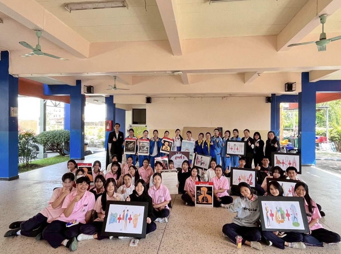 On Friday, December 28, 2025, Assistant Professor Dr. Nawaporn Wutthitham led a delegation of third-year nursing students from Christian University of Thailand’s College of Nursing to participate in Project 1: Student Development Against E-Cigarette Threats – “Smoke-Free Youth: Staying Away from Cigarettes and E-Cigarettes” at Wat Sing Secondary School in Bangkok. This initiative was conducted under the “Nurse Network for a Nicotine-Free Thai Society” program, organized by the Central and Eastern Region Student Nurses Club for Building a Tobacco-Free Thai Society, with support from the Thai Health Promotion Foundation (ThaiHealth).