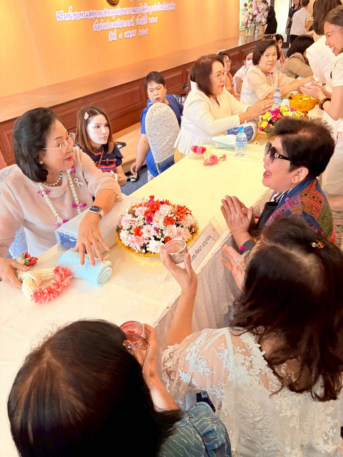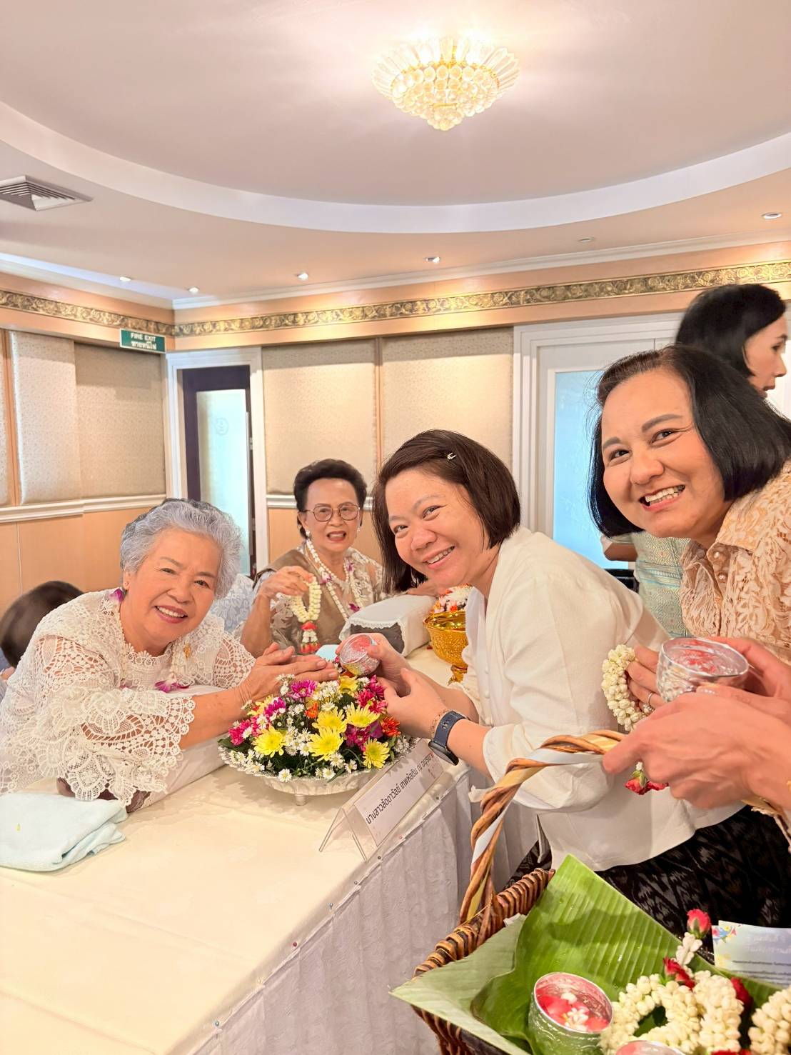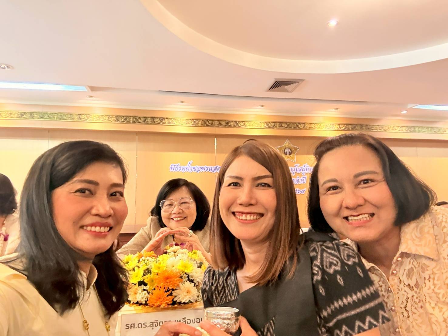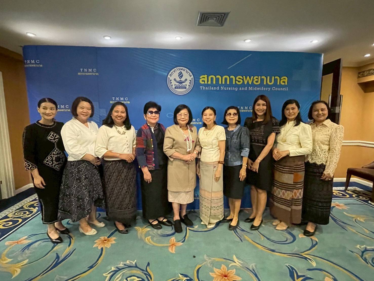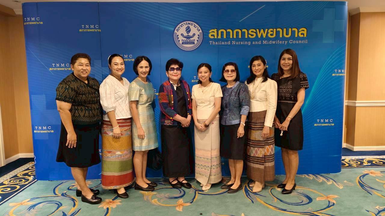 The ceremony was attended by Associate Professor Dr. Tassana Boontong, President of the Thailand Nursing and Midwifery Council; Professor Dr. Siriorn Sindhu, President of the Nursing Association; Associate Professor Dr. Suchittra Luangamornlert, former President of the Thailand Nursing and Midwifery Council; Dr. Teeraporn Sathira-Angkura, First Vice President of the Thailand Nursing and Midwifery Council; Associate Professor Dr. Renu Pookboonmee, Second Vice President of the Thailand Nursing and Midwifery Council; and senior nurses, held at the 4th floor hall of Nakharinthrasri Building, Nursing Council, to show gratitude and respect towards senior nursing educators.