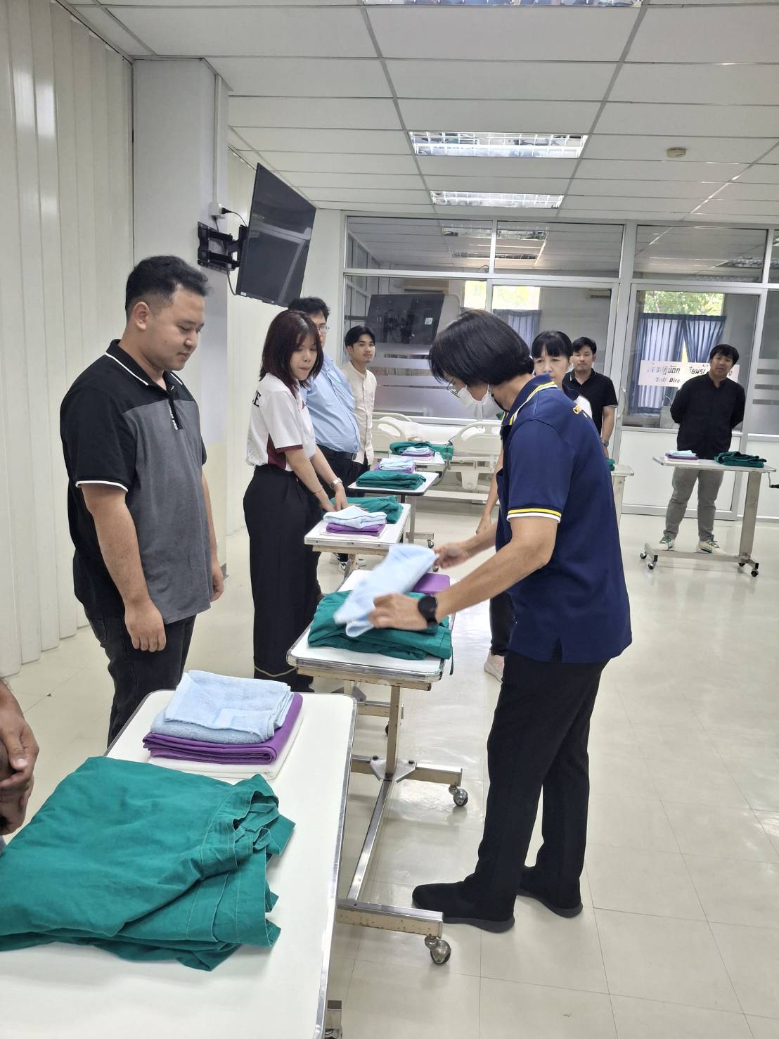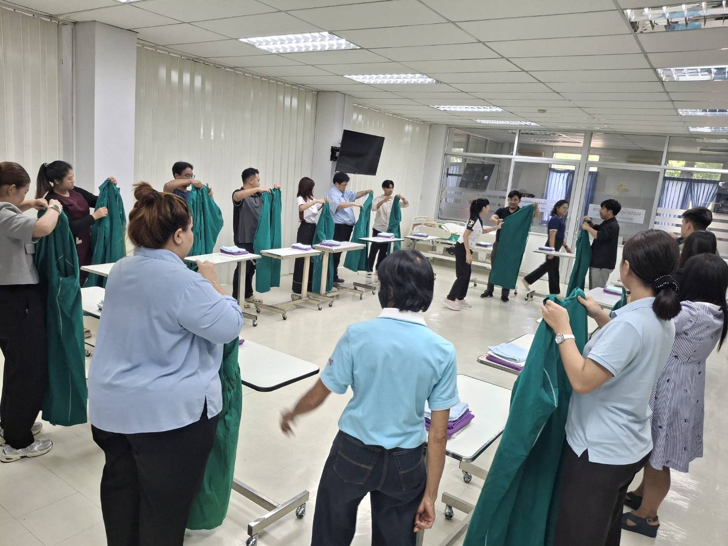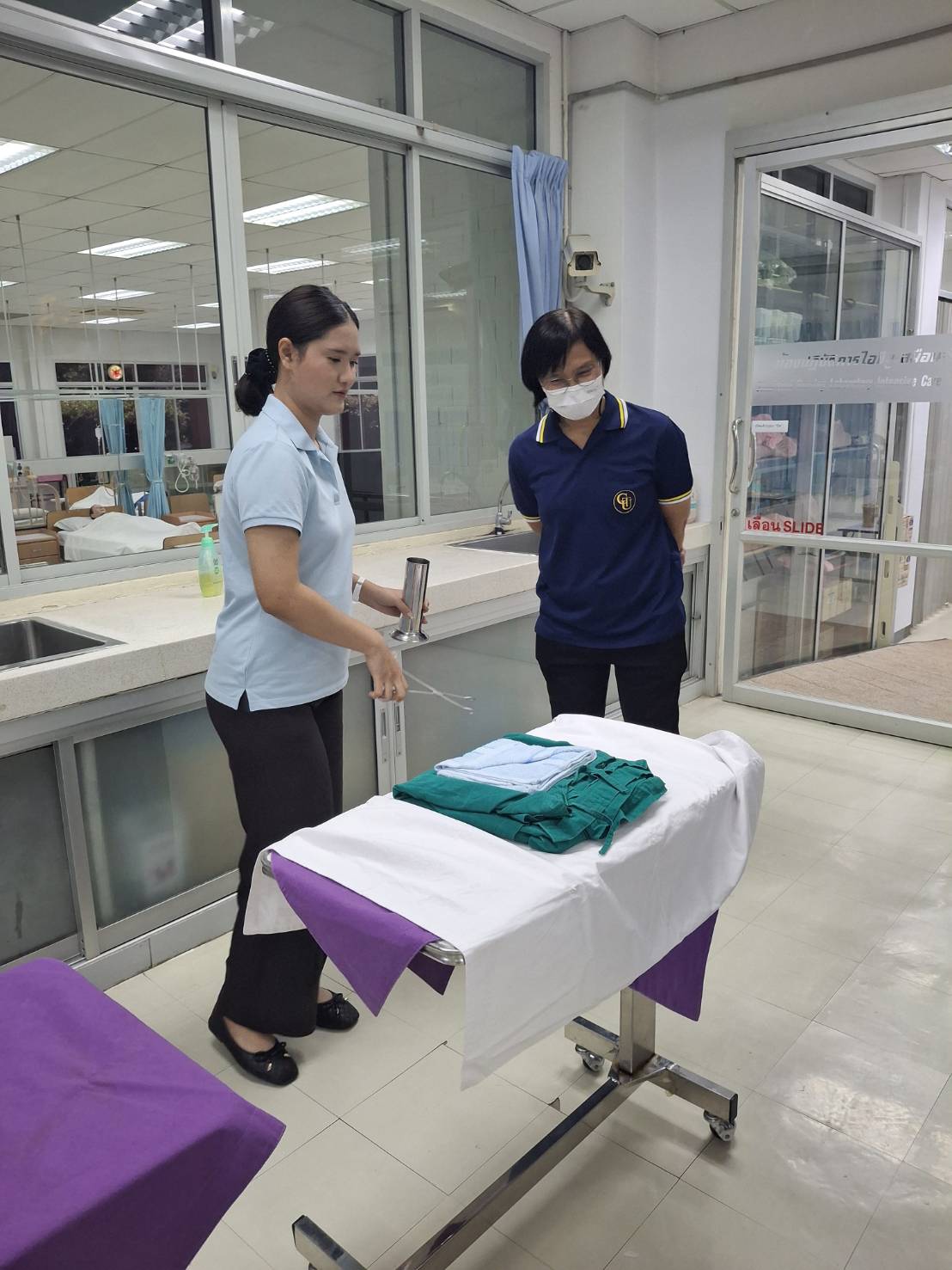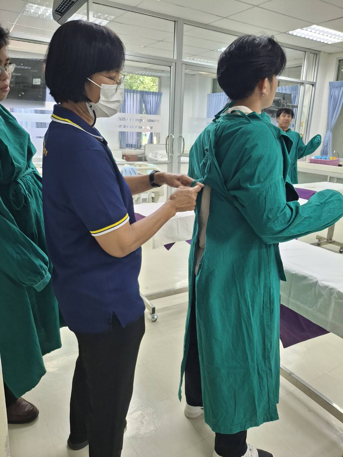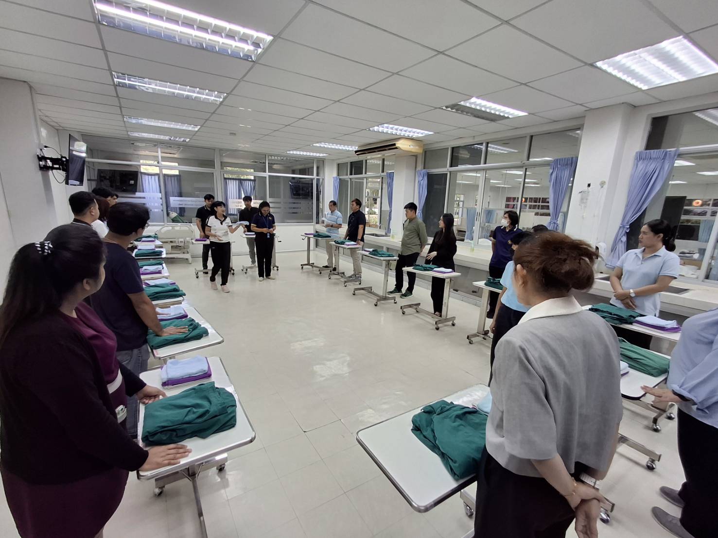 On Saturday, September 13, 2025, the College of Nursing and Administration Section was approved to organize a workshop on “Sterile Techniques to Increase Knowledge and Competence of Personnel in the Workplace” (Operation Theatre Sterilization Technique Basic Course). The objective is to develop skills and knowledge in basic operating room sterile techniques for personnel of medical equipment companies. There were a total of 16 participants in the project: 13 participants from Medical Creation Co., Ltd. (Head Office), 2 participants from Digital Orthopedic Solution Co., Ltd., and 1 participant from Thai Olba Healthcare Co., Ltd. (Head Office). Asst. Prof. Dr. Netchanok Sritoomma, Dean of the College of Nursing, gave the opening speech for the project, and participants listened to the lecture and participated in training in sterile operating room techniques led by four experienced nursing instructors and nurses serving as lecturers.