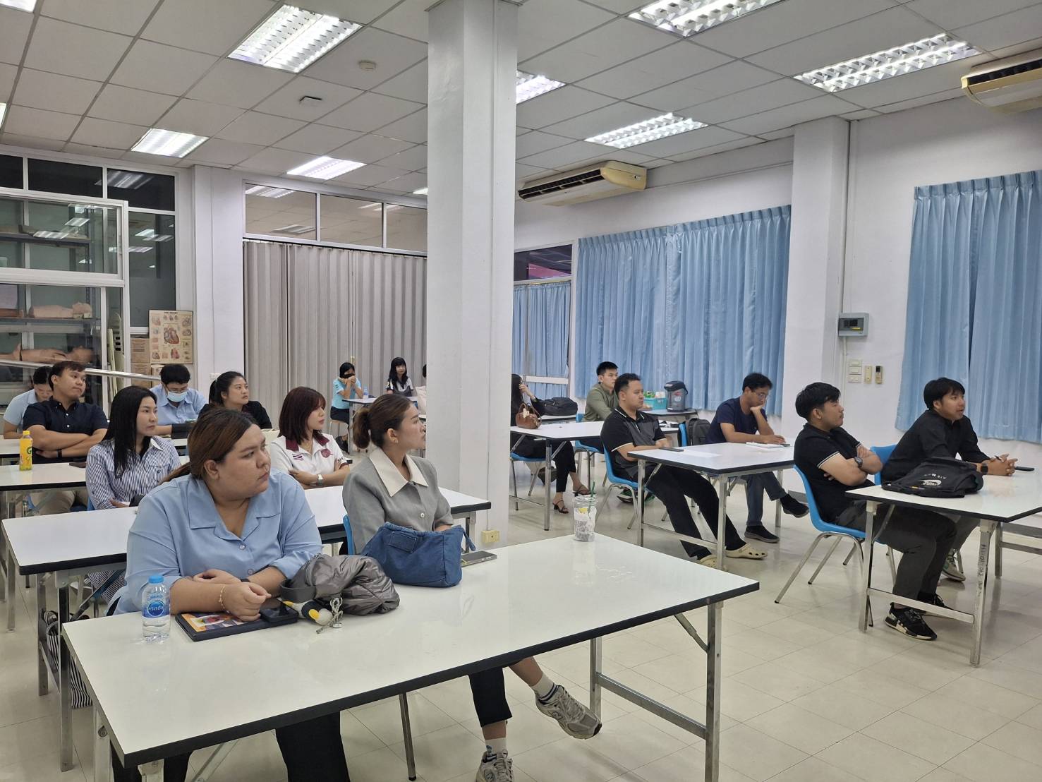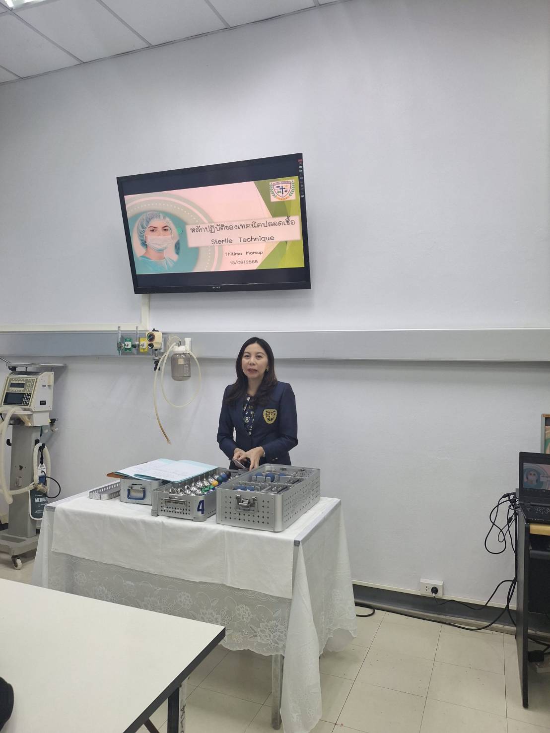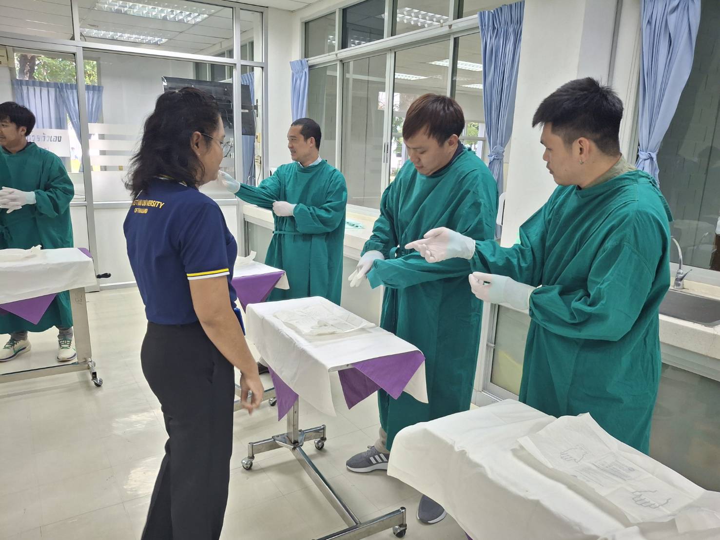 เมื่อวันเสาร์ที่ 13 กันยายน พ.ศ. 2568 คณะพยาบาลศาสตร์ร่วมกับฝ่ายบริหารงานทั่วไปได้จัดโครงการอบรมเชิงปฏิบัติการเรื่อง “สเตอร์ไรล์เทคนิคเพื่อเพิ่มความรู้และสมรรถนะของบุคลากรในสถานประกอบการ” (Operation Theatre Sterilization Technique Basic Course) โดยมีวัตถุประสงค์เพื่อพัฒนาทักษะ และความรู้ด้าน Sterile technique งานห้องผ่าตัดขั้นพื้นฐานแก่บุคลากรของบริษัทเครื่องมือแพทย์ โดยมีผู้เข้าร่วมโครงการฯ ทั้งสิ้น จำนวน 16 คน จากบริษัท เมดิคอล ครีเอชั่น จำกัด (สำนักงานใหญ่) จำนวน 13 คน บริษัท ดิจิทัล ออร์โธปิดิกส์ โซลูชัน จำกัด จำนวน 2 คน และบริษัท ไทย โอลบา เฮลท์แคร์ จำกัด (สำนักงานใหญ่) จำนวน 1 คน โดยมี ผศ.ดร.เนตรชนก ศรีทุมมา คณบดีคณะพยาบาลศาสตร์ กล่าวเปิดโครงการฯ และผู้เข้าร่วมโครงการได้รับฟังการบรรยาย รวมทั้งฝึกปฏิบัติการเทคนิคปลอดเชื้อในห้องผ่าตัดจากอาจารย์พยาบาลและพยาบาลผู้มีประสบการณ์ร่วมเป็นวิทยากร จำนวน 4 ท่าน