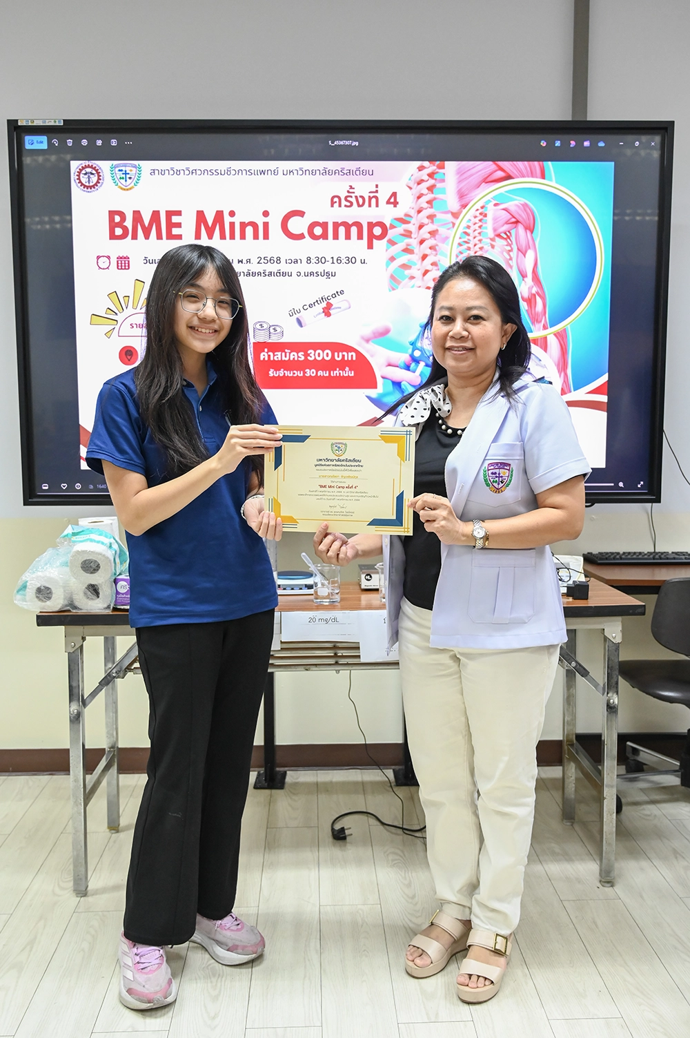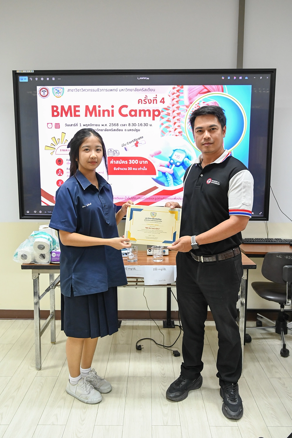 On Saturday, November 1, 2025, College of Health Sciences, Christian University of Thailand organized “The 4th BME Mini Camp” to provide an opportunity for high school students to learn and explore real experience of biomedical engineering. A total of 25 students participated in this activity.