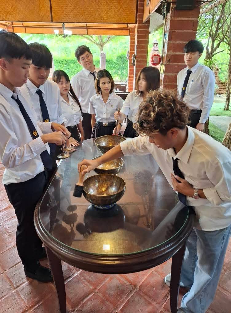 เมื่อวันที่ 6 พฤศจิกายน 2568 คณาจารย์และนักศึกษาสาขาการจัดการบริการสุขภาพ จำนวน 25 คน ในรายวิชา THSM3403 ลูกค้าสัมพันธ์กับงานบริการสุขภาพ ได้เดินทางไป ทัศนศึกษาและฝึกปฏิบัติ ณ ศรีชัยยะปุระ กาญจนบุรี เป็นรีสอร์ตและศูนย์สุขภาพ (Wellness) ที่เน้นการท่องเที่ยวเชิงสุขภาพแบบองค์รวมแห่งแรกในจังหวัดกาญจนบุรี มีความโดดเด่นในการฟื้นฟูร่างกายด้วยธรรมชาติ สมุนไพร และศาสตร์แพทย์แผนไทย มีการนำแร่ธรรมชาติจากบ่อพลอย เช่น หินร้อนแร่เหล็กไหล หินลาวา และหินนิลมาประยุกต์ใช้ในการบำบัด พร้อมทั้งให้บริการที่พักพร้อมอาหารเช้าเมนูสุขภาพ และโปรแกรมห้องพักระยะสั้น-ยาว พร้อมหัตถการไทย ผู้เข้าพักสามารถเข้าร่วมกิจกรรมต่าง ๆ เช่น การอาบป่า (Forest Bathing) และกิจกรรมสร้างกลิ่นบำบัด เพื่อความผ่อนคลายและปรับสมดุล ในการทัศนศึกษาครั้งนี้นักศึกษาได้นำองค์ความรู้มาบูณาการในการเรียนและการทำงานต่อไปในอนาคต